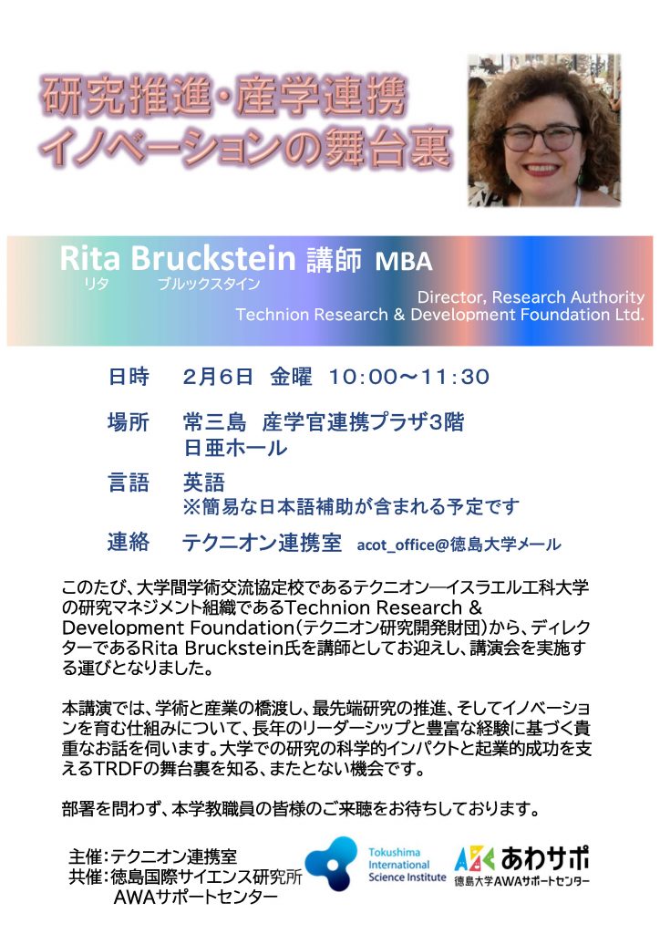 | 連絡 | テクニオン連携室 acot_office@徳島大学メール |