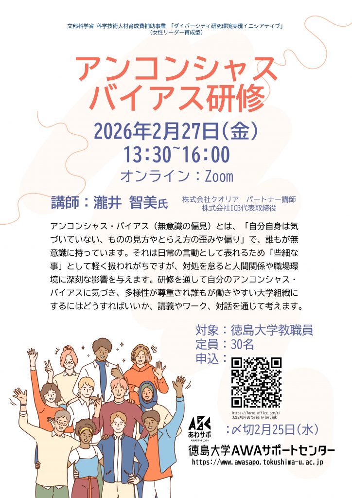文部科学省 科学技術人材育成費補助事業「ダイバーシティ研究環境実現イニシアティブ」(女性リーダー育成型)アンコンシャス・バイアス研修開催について